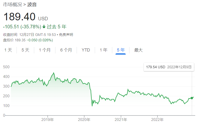 过去五年,波音股价跌超35% 谷歌财经截图