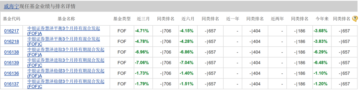 在重仓的ETF基金大幅下跌的影响下,中银证券慧择进取3个月上半年跌幅较大,成为了全市场FOF产品中业绩最差的。