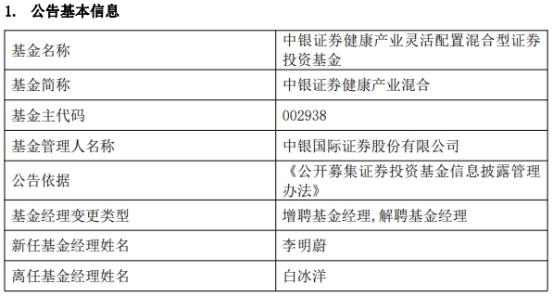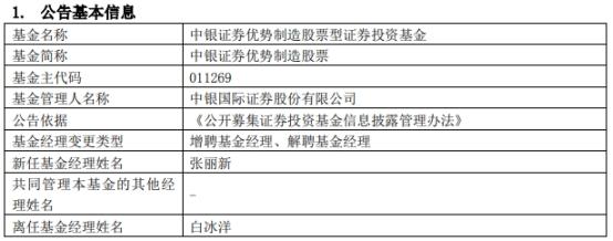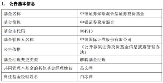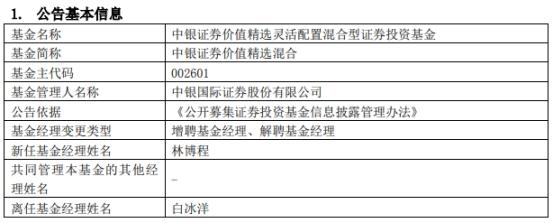 【推荐】中银证券白冰洋离任4只权益基金-002601基金