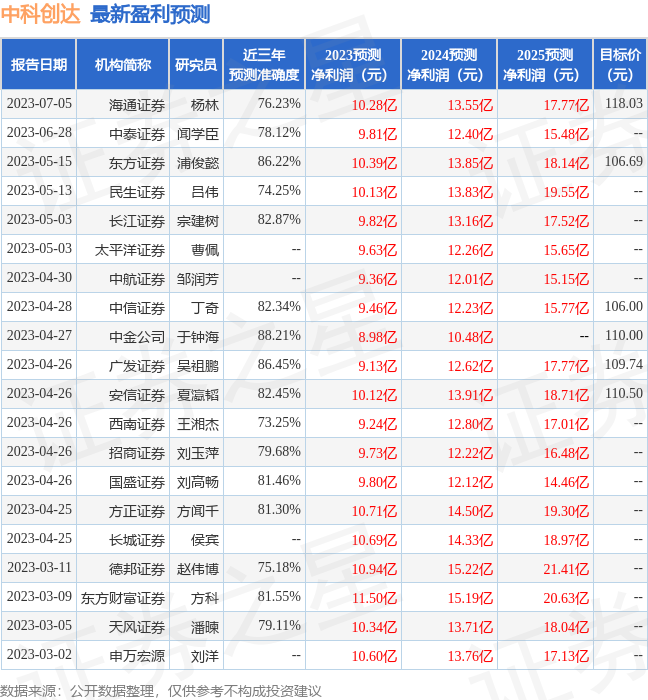 最新盈利预测明细如下: