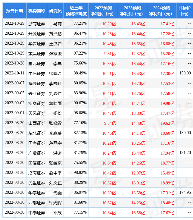 证券之星数据中心根据近三年发布的研报数据计算,招商证券赵中平研究员团队对该股研究较为深入,近三年预测准确度均值高达98.82%,其预测2022年度归属净利润为盈利10.42亿,根据现价换算的预测PE为48.84。