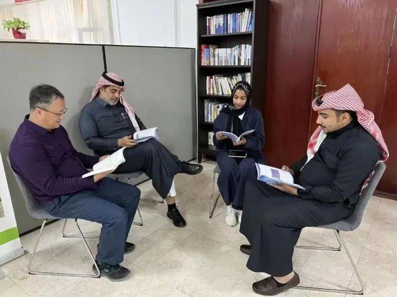 沙特项目部将“中国书架”摆放在办公区最醒目的位置,方便外籍员工读取。中方员工还当起义务“图书推荐员”,帮助外籍员工快速精准的挑选感兴趣的图书。沙特籍员工穆斯塔法翻看着图文并茂的《北京名物》,兴致勃勃的指着一页手绘彩图说:“北京还有这么多好风景,我得做个读书笔记,当作下次去中国旅游的指南。”沙特籍员工杜阿拿起几本儿童读物说:“我想借阅回去给孩子读,让他们知道爸爸工作单位的国家有如此精彩的文化,还有他们最喜爱的大熊猫。”