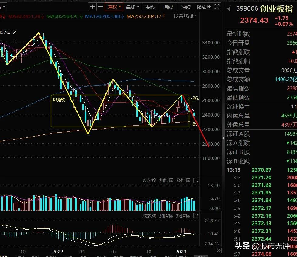 但是宁德时代会跌到350,创业板会跌到2100点。