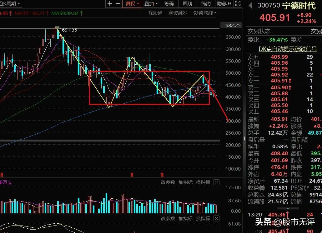 创业板现在是被宁德时代“绑架”了,它们的走势结构几乎是一模一样。