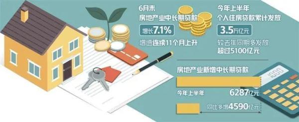 稳楼市是当前稳增长的发力方向之一。中国人民银行新闻发言人、调查统计司司长阮健弘近日在上半年金融统计数据情况新闻发布会上介绍,房地产行业贷款增长呈现持续恢复态势。6月末,房地产业中长期贷款增长7.1%,比上月末和上年同期分别高0.2个和8.5个百分点,增速已是连续11个月上升。上半年,房地产业新增中长期贷款6287亿元,同比多增4590亿元。