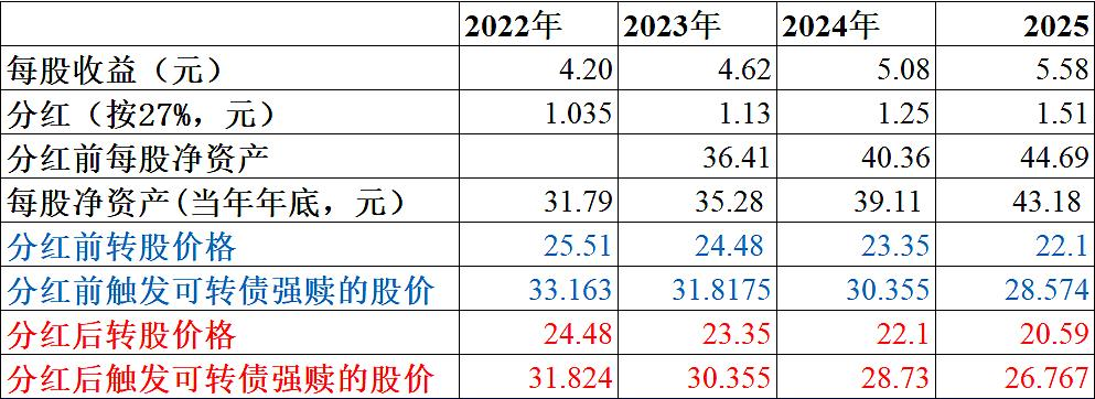 ,就会触发可转债的强赎条件。分红后的每股净资产将为: