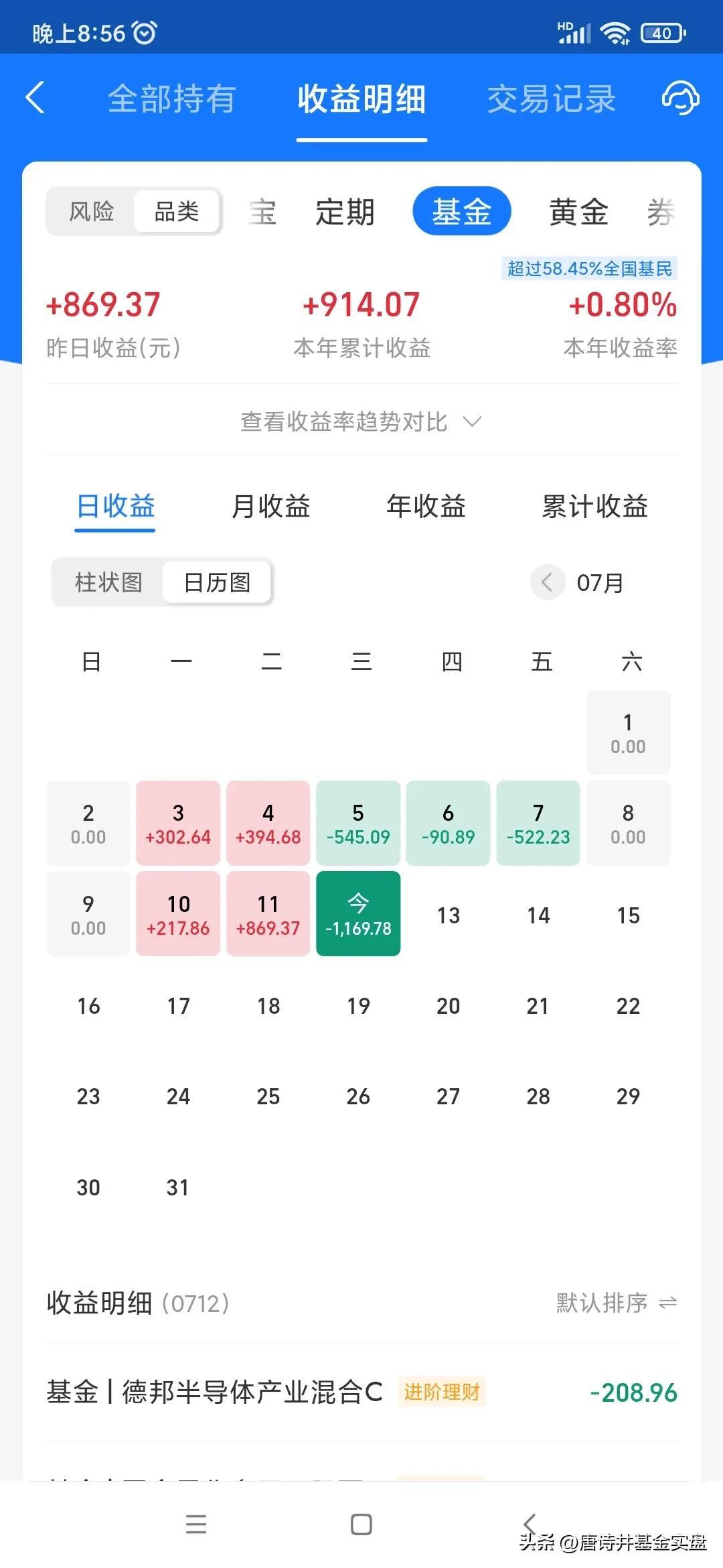 【当日盈亏】:-1169.78,超过全国58.45%基民(附图)。