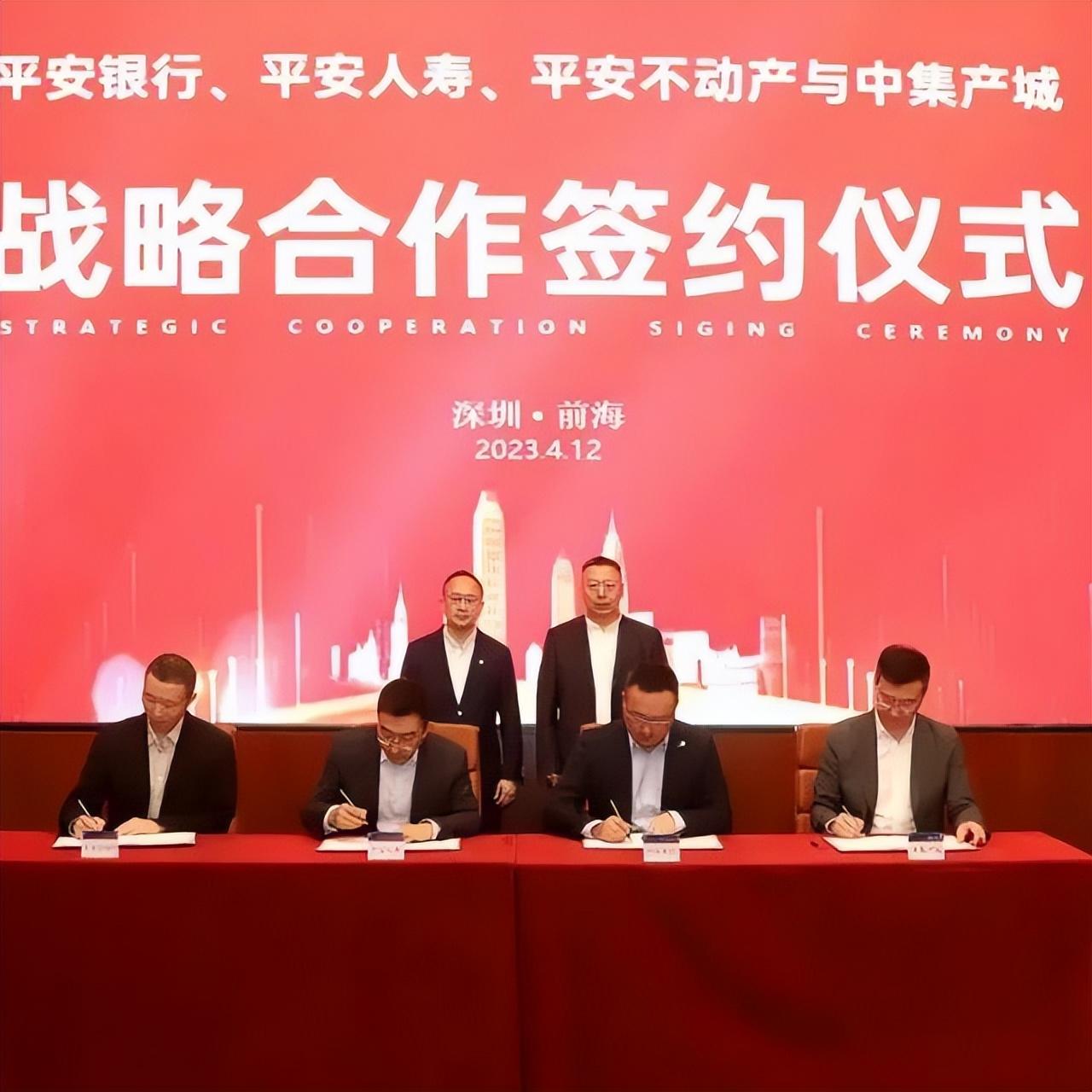 4月12日,平安银行股份有限公司(以下简称“平安银行”)、中国平安人寿保险股份有限公司(以下简称“平安人寿”)、平安不动产有限公司(以下简称“平安不动产”)与深圳市中集产城发展集团有限公司(以下简称“中集产城”)战略合作框架协议签约仪式在深圳中集·企业家交流中心隆重举行。