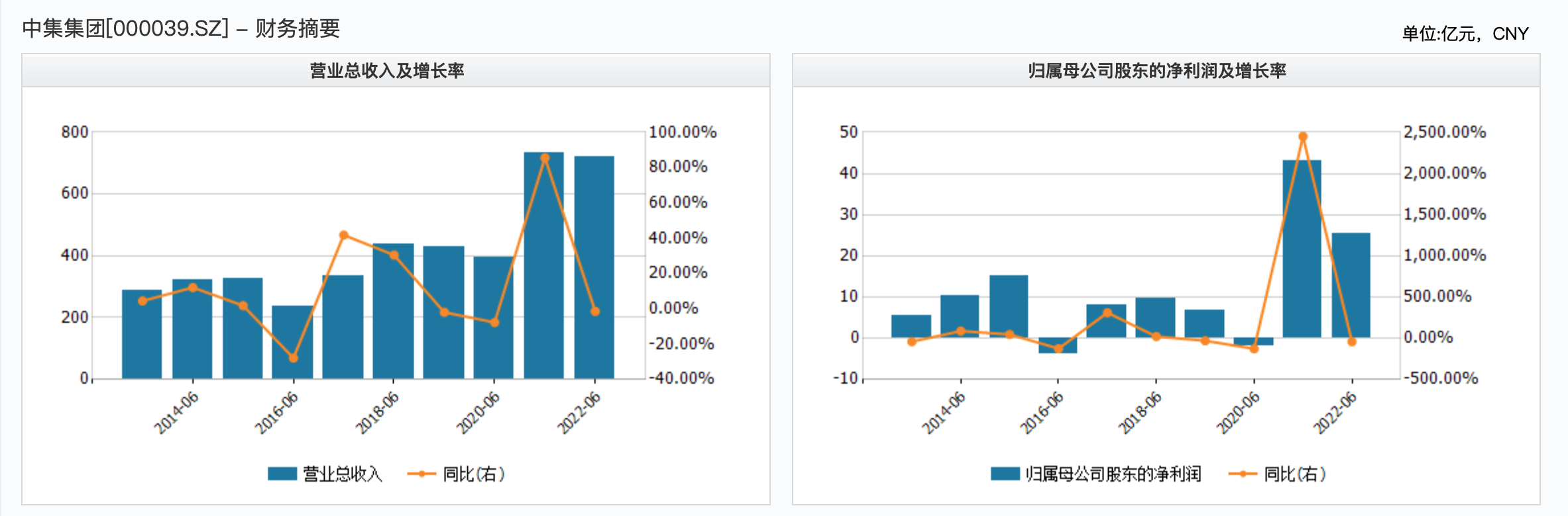 自2021年航运形势大好,2021年上半年中集集团营收和净利润达到历史同期高位。而今年上半年营收和净利同比下降,但仍远高于2020年及之前水平。