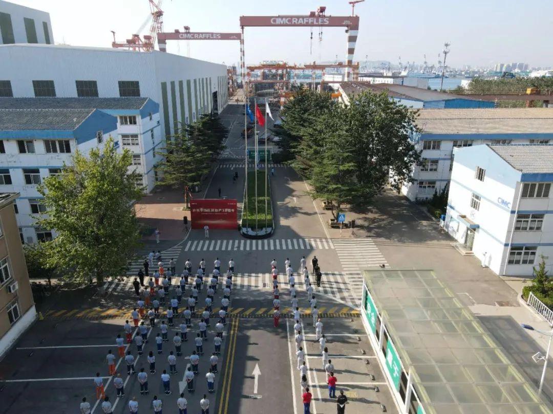 烟台中集来福士海洋工程有限公司烟台基地举行升旗仪式
