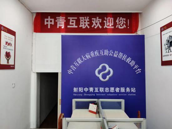 在射阳县红旗西路58号附近的“中青互联”门店,简单的门头招牌上,写着“加入中青互联,看大病不花钱”。店内悬挂着“射阳中青互联志愿者服务站”的标志牌,但没有悬挂任何营业执照。在这里,一些老年人正在为进店的市民介绍加入“中青互联”可以享受的互助服务。