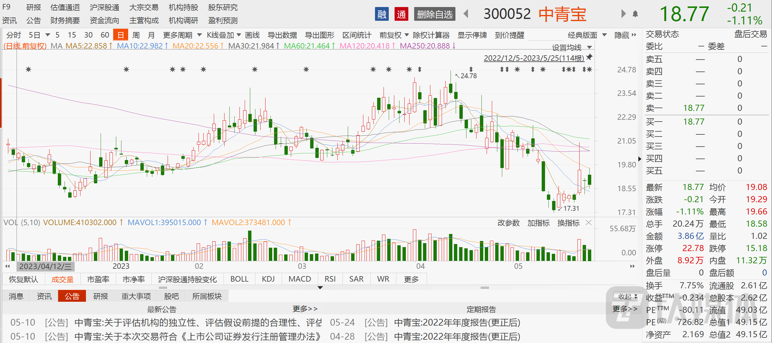 实际上,在二级市场上,资本对中青宝的收购行为也并不买账。从中青宝公布收购草案到现在,期间最大跌幅超过10%。截至5月25日收盘,下跌1.11%,股价报收18.77元,总市值49.15亿元。