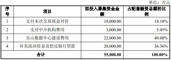 因此,中青宝拟通过募集配套资金支付上述费用。这笔交易也安排配套募资5.5亿元。其中1亿元于用此次交易现金对价,连3000万元的中介机构费用也来自定增,另有2亿元用于补充流动资金和偿还银行贷款。只有2.2亿元用于主业投入,建设乐山数据中心。