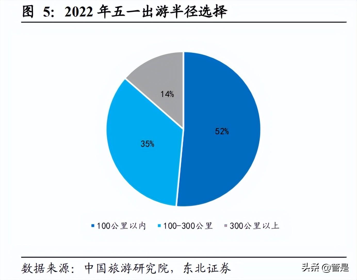 疫情常态化背景下,面对出行的不确定性,旅游市场呈现出距离、时长双缩短趋势, 旅游行业的短期复苏主要由短途游、周边游带动。距离方面,文旅部发布的 2022 年 春节期间数据显示,2022 年春节假期,省内游、跨省游比例分别为 78.3%、21.7%, 相较于 2020 国庆,短途旅游比例进一步增加;同时,中国旅游研究院表示,疫情以 来城市居民出游距离大幅度缩减,2022 年清明已收缩到 100 公里以内,2022 年五 一更是延续这一趋势,游客平均出游距离仅 99.6 公里,较去年同期下降 33.2%。