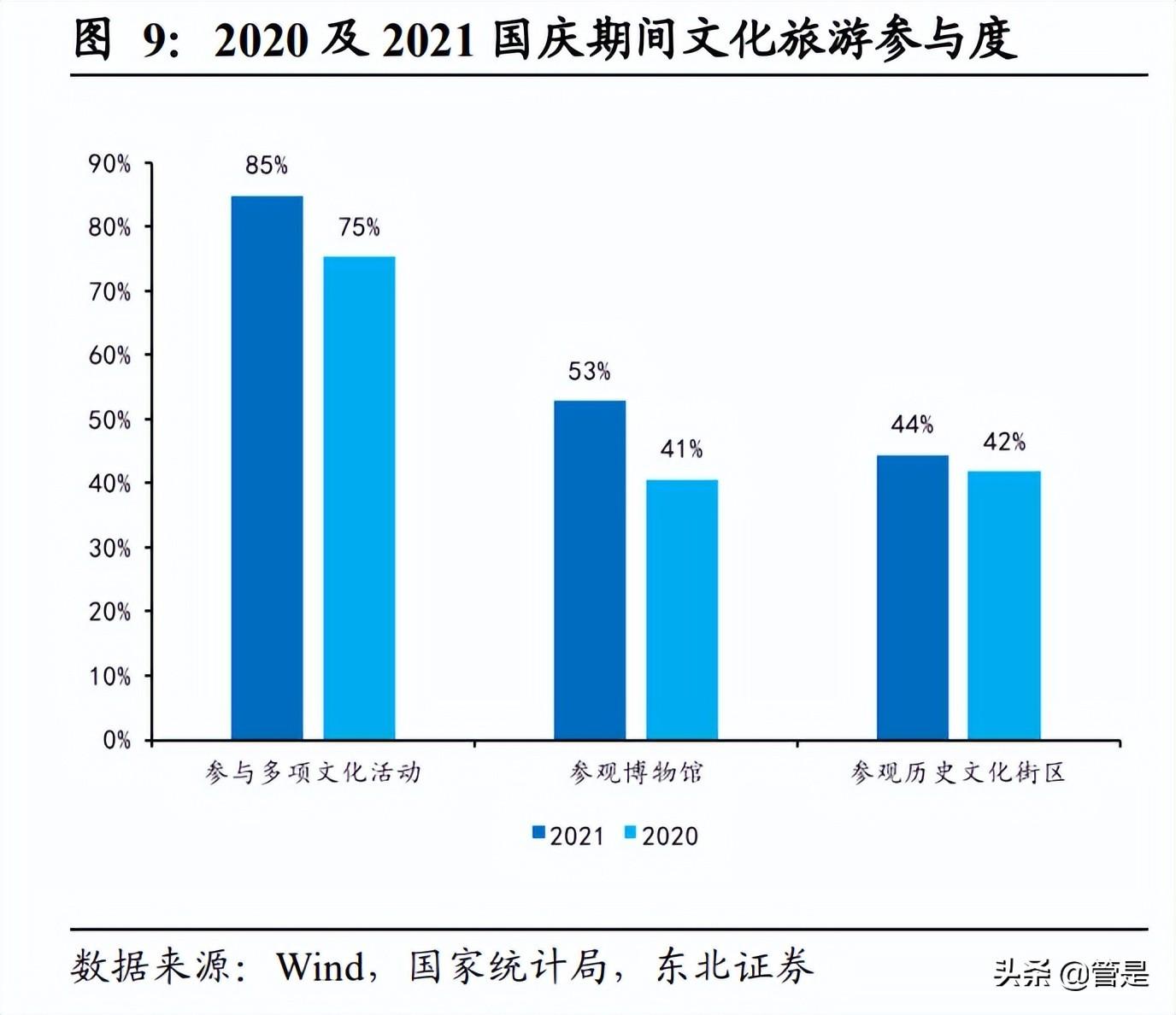 大众旅游消费需求呈现从低层次向高品质和多样化转变的趋势,游客追求。一方面, 消费者对文化体验产品的青睐日益增加,带动旅游行业个性化发展,具备互动性文 化体验的复合型旅游产品为旅游业带来新的机遇,观演+旅游、研学+旅游等备受青 睐,推出特色活动成为景区引流的新渠道。文化和旅游部数据中心专项调研显示, 2021 年国庆节假日期间,参与多项文化活动、参观博物馆和历史文化街区的游客比 例相较于 2020 年均有不同程度的上升,故宫博物院、秦始皇兵马俑博物馆等热门文 博场更是一票难求;2022 年春节期间,各地均因地制宜推出了春节相应民俗游体验活动。随着深度文化游、体验游成 为新风尚,这类旅游需求的升级归根结底来源于人民日益增长的精神文明需要,长 期来看趋势不改,文化参与将成为旅游行业的新亮点,持续推动文旅的深度融合。 另一方面,休闲度假旅游逐渐取代观光旅游成为了主要的出游目的深度游及休闲度 假模式为旅游业开启全新赛道。2010 年以来,休闲度假游逐渐反超观光游成为了城 镇居民主要的出行目的。与普通旅游观光不同,休闲度假游的目的地在景观之外, 还需配套良好的住宿环境、必要休闲设施和高品质的服务,客单价高、复购率高。 长期看,休闲度假趋势将持续发酵,中青旅旗下两大休闲度假小镇有望成为行业领 跑,率先修复业绩。