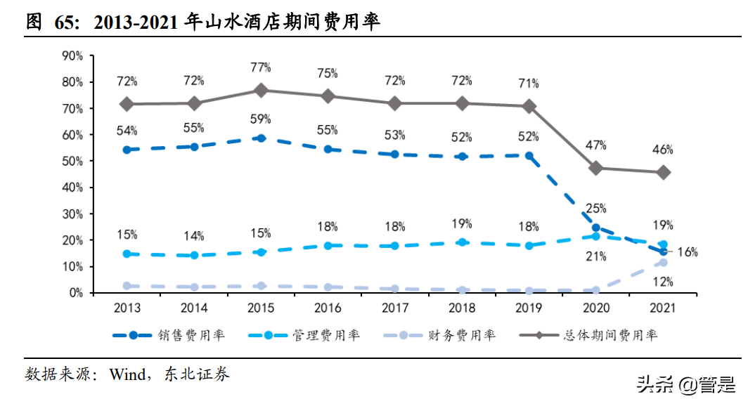 山水酒店的多品牌差异化定位将为公司业务带来极大市场适应性。山水酒店采取 “直营、加盟、托管并重”的商业模式,以“山水”为核心品牌进行延伸,以“投 资直营+品牌加盟+委托管理+兼并收购”等方式发展扩张,疫情前共拥有门店(含筹 建)116 家,其中直营店 38 家(当年新增 3 家),加盟店 78 家(当年新增 15 家), 受疫情前影响 2020 年门店数量降至 105 家。考虑到公司现有产品矩阵丰富,差异 化的经营定位有助于提升其疫后适应市场需求各种变动的能力,具备较强复苏弹性。 公司先后创设了中端特色商务酒店“山水时尚”、中高端特色精品酒店 “山水 S”、城市度假轻奢酒店“山水花园” 、国际化商务精品酒店“山水富丽华”、设计师酒 店“山水设计师”以及多元融合的酒店品牌“山水+”六大品牌。