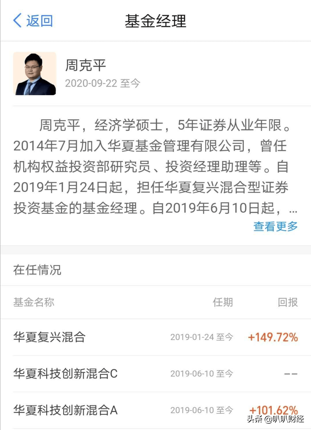 他管理下的华夏复兴混合,从2019年1月24日至今,收益回报达到149.72%。他管理下的华夏科技创新混合,从2019年6月10日至今,收益回报达到101.62%。也就是说,周克平先生管理下的科技主题基金,在短短18个月左右的时间里,都取得了超过100%的收益!这点让我们对华夏创新未来的业绩,更加期待。