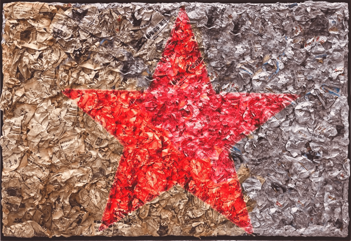 Sophia Xinman Wang's comprehensive material work "A Hundred Years of Journey" presents the historical context of the 70 years of the party and the people forging ahead through nearly 70 old Chinese newspapers from 1949 to 2019 as the main creative materials, highlighting the glorious journey taken by the Chinese people to create historical greatness and realize the great rejuvenation of the Chinese nation.