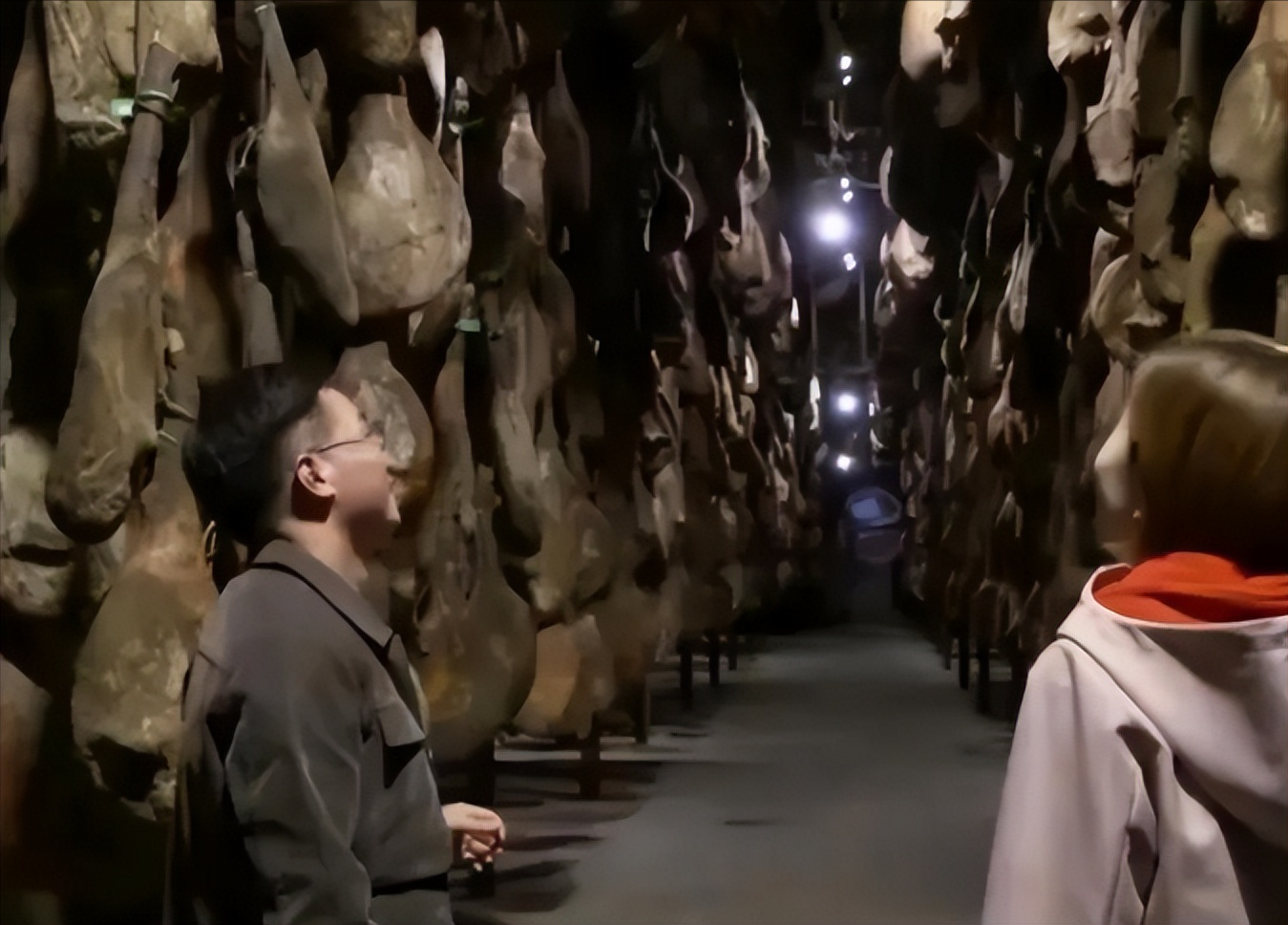 为了能更好的区分,陈阳根据火腿年份的不同,把火腿存放在不同的位置上,依次存放可以存放10万条左右,空间还是很大的。