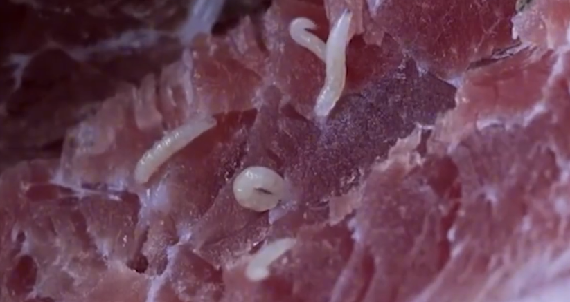 成功的道路上总会遇到各种各样的难题,火腿存放在山洞不到两个月的时间,洞穴里面的猪肉,就被乳白了的虫子所覆盖,不单单是一个火腿上有虫子,所有的火腿都被密密麻麻的虫子所掩盖。
