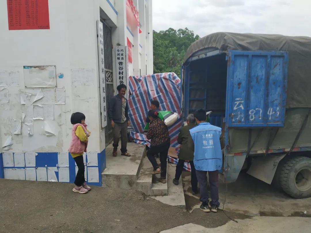 首批援助物资于21日下午装车,22日上午启运。22日下午18时,900份粮油运抵当地,并开始陆续发放到村民手中,帮助他们缓解灾后生活困境。