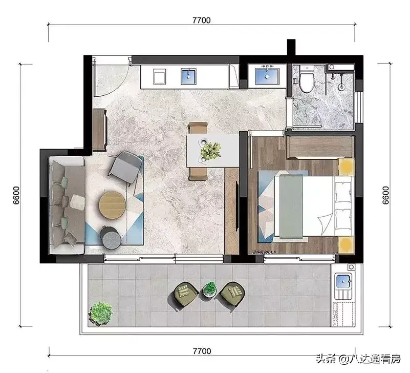 在52㎡的房间里打开悠闲时光的按钮,阔大景观阳台,满足不安分的自己,户型方正,空间布局科学合理,打造小户型的灵动至美。