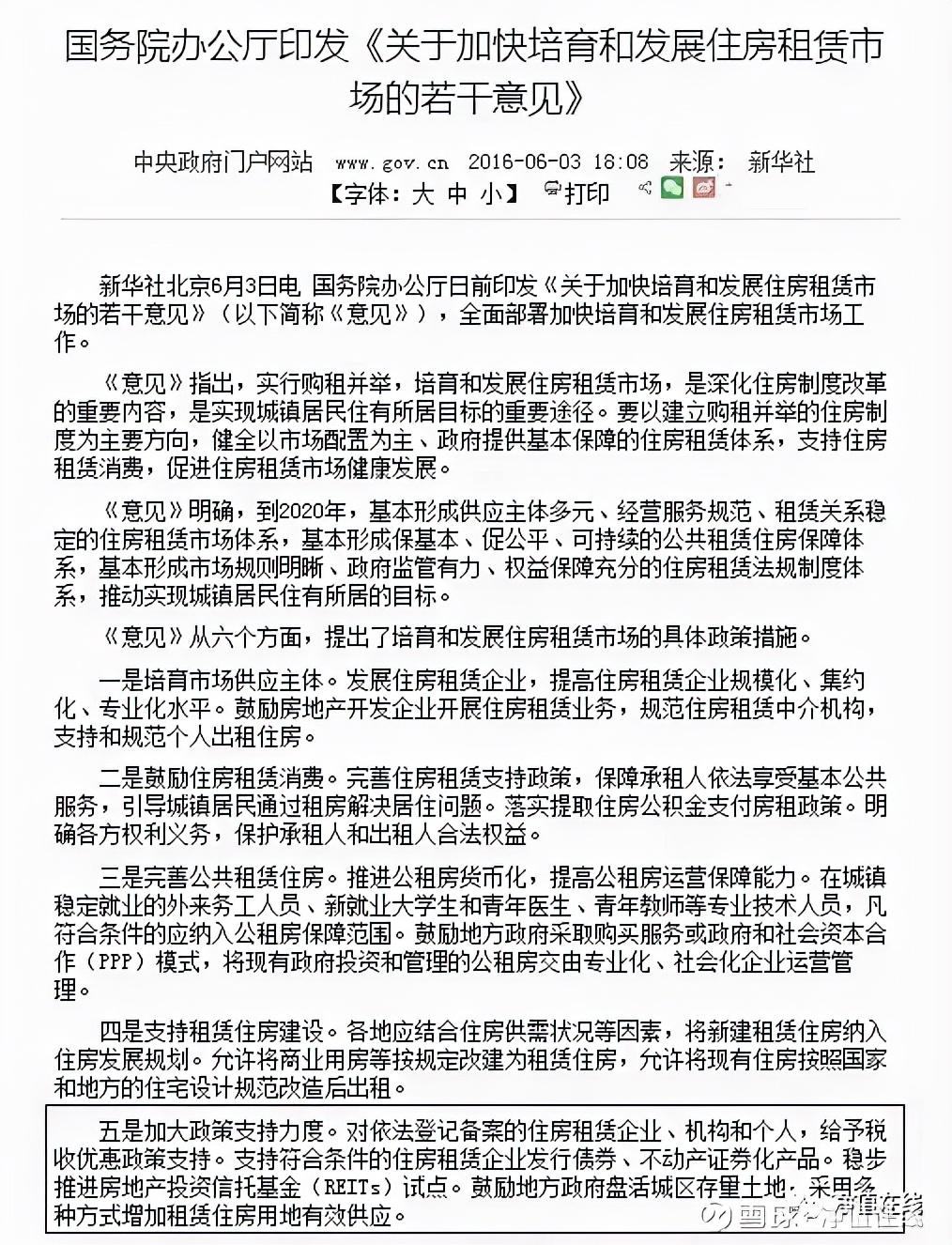 2016年6月3日,国务院办公厅印发《关于加快培育和发展住房租赁市场的若干意见》就