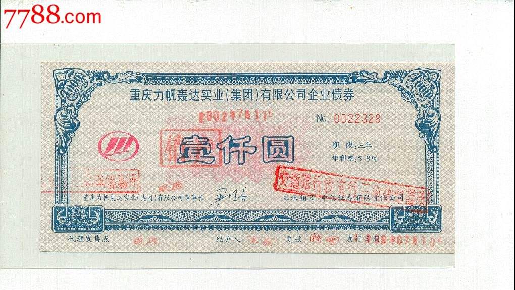 1、面值:图1中文字最大的“壹仟圆”就是面值,也就是这张债券在到期日可以兑换回1000元的本金;