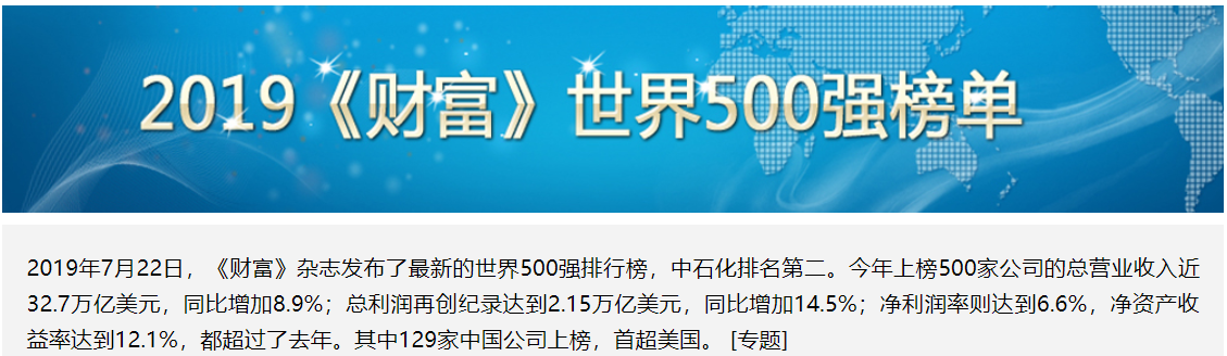 2019年出炉的世界500强营收值