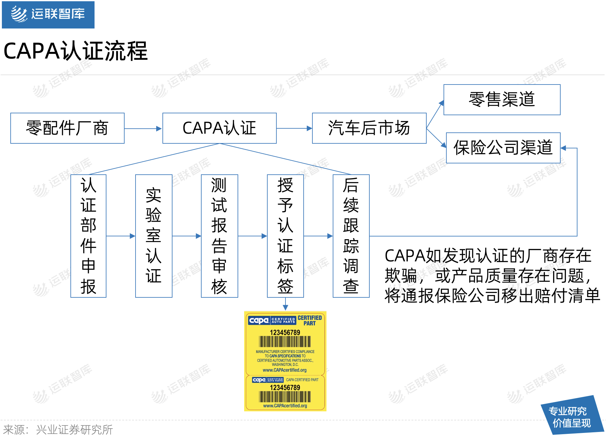 在CAPA严谨的测试及检验程序下,从上游的供应商到中间流通,一直到末端用户的应用和问题的追溯,期间都有严格的质量认证和相应的溯源和追责的机制。总体上,通过认证的零部件可以很好地进入美国市场流通,虽然汽配市场的参与者不受限制,但是市场违规成本很高,因此确保了相对高水平的行业诚信和透明度。