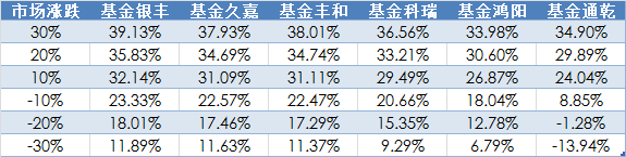 下表显示的是好买基金研究中心对目前存续着的6只“老封基”未来折价率的测算,最左边一栏为市场假设未来上涨和下跌幅度,根据压力测算,若到期点位再暴跌30%,“老封基”们依然不同程度保存着一定的安全垫。