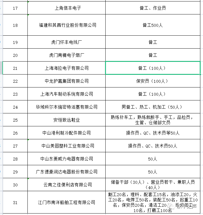 现因公司发展需招聘下列人员,务工人员招聘无需缴纳任何费用,携带个人日常私人物品即可。