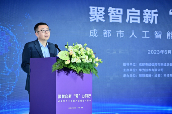 6月9日, 在成都市经信局市新经济委、成都市投资促进局、成都市高新区管委会的指导下,由华为技术有限公司主办,智算云腾(成都)科技有限公司、深圳市人工智能产业协会承办的主题为“聚智启新,‘蓉’力同行”的成都市人工智能产业融通对接会圆满举办。成都市委常委、常务副市长刘筱柳,成都市经济和信息化局局长、成都市新经济发展委员会主任张新宇,成都市政务服务管理和网络理政办公室主任冯秀富,成都市投资促进局副局长张平,成都市科学技术局副局长陈钢,成都市国有资产监督管理委员会副主任王峻昆,成都市经信局市新经济委副主任周成及成都市各区县相关领导;深圳市人工智能产业协会执行会长范丛明;华为公司副总裁、计算产品线总裁张熙伟、华为川藏政企业务总经理郭洪斌、华为川藏云业务总经理张斌等出席活动。来自深圳和成都的人工智能相关部门领导和企业代表近七十余家进行了洽谈对接,聚焦人工智能算力发展及产业应用,共话人工智能发展新范式,共同提升产业集聚力、创新力与影响力。