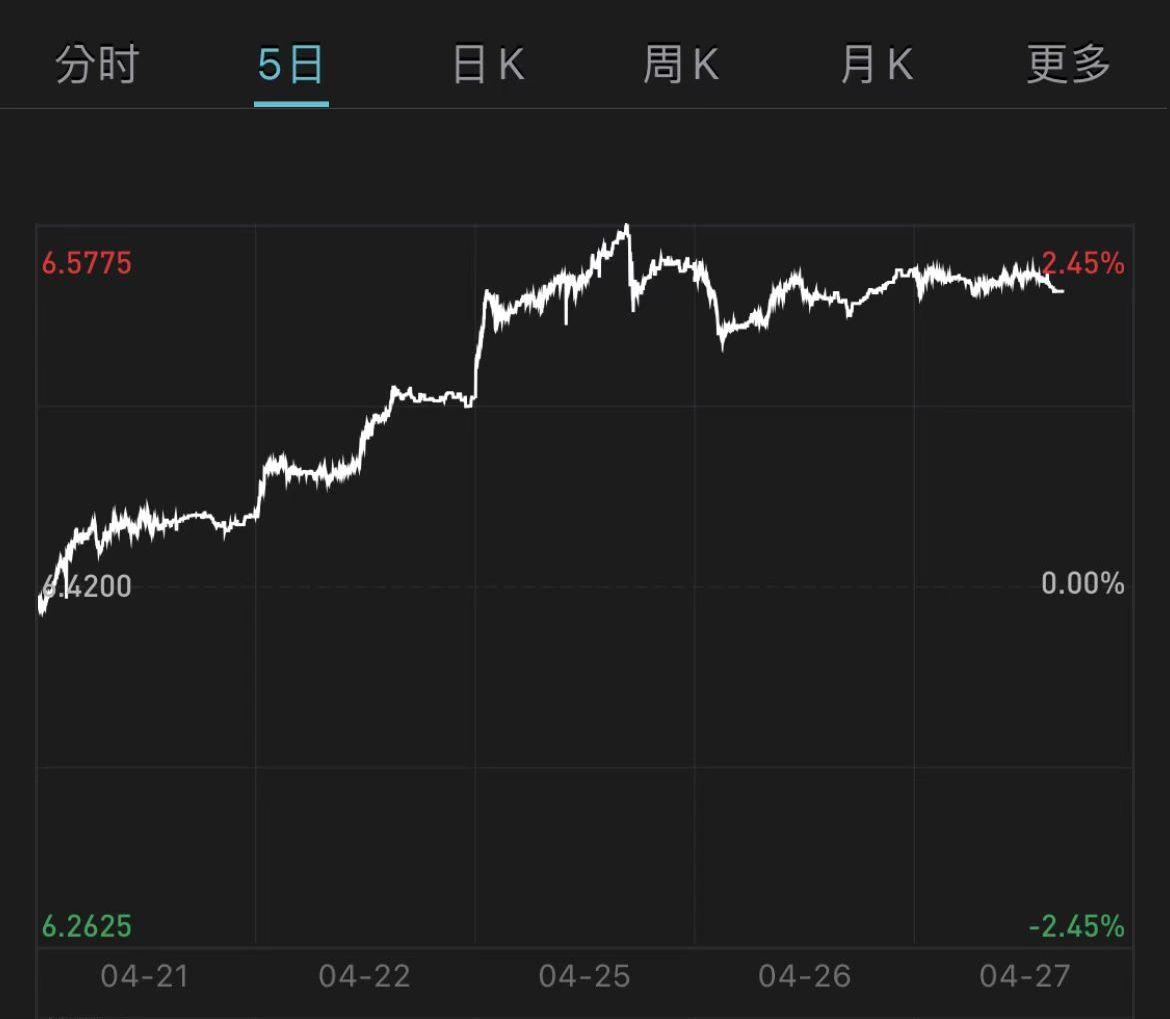 近5日美元对人民币走势
