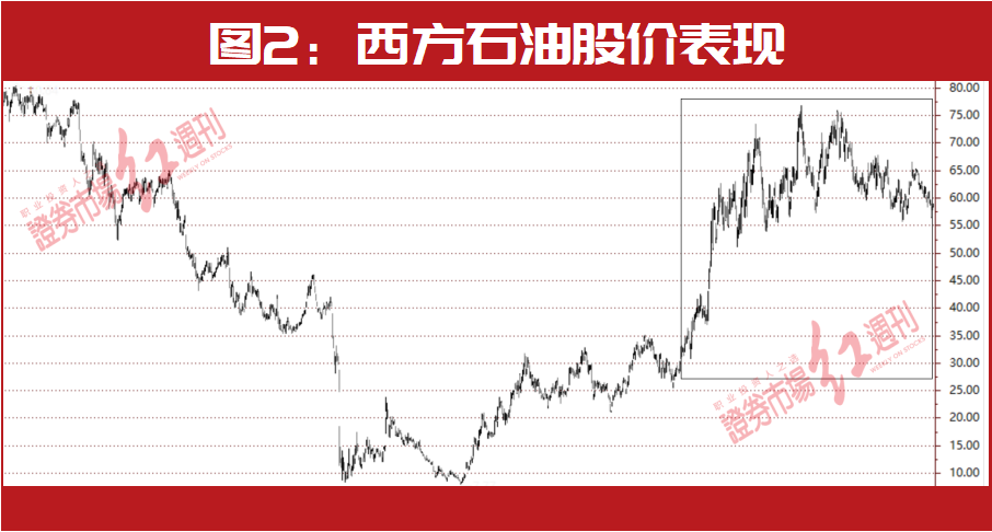 从历史持仓来看,巴菲特曾在2019年3季度建仓西方石油,不过,2020年第2季度时,巴菲特又将所持西方石油股份悉数卖出。2022年一季度至今,巴菲特对西方石油开启了新一轮增仓周期。自此之后,西方石油股价也出现了一轮大幅上涨(见图2)。