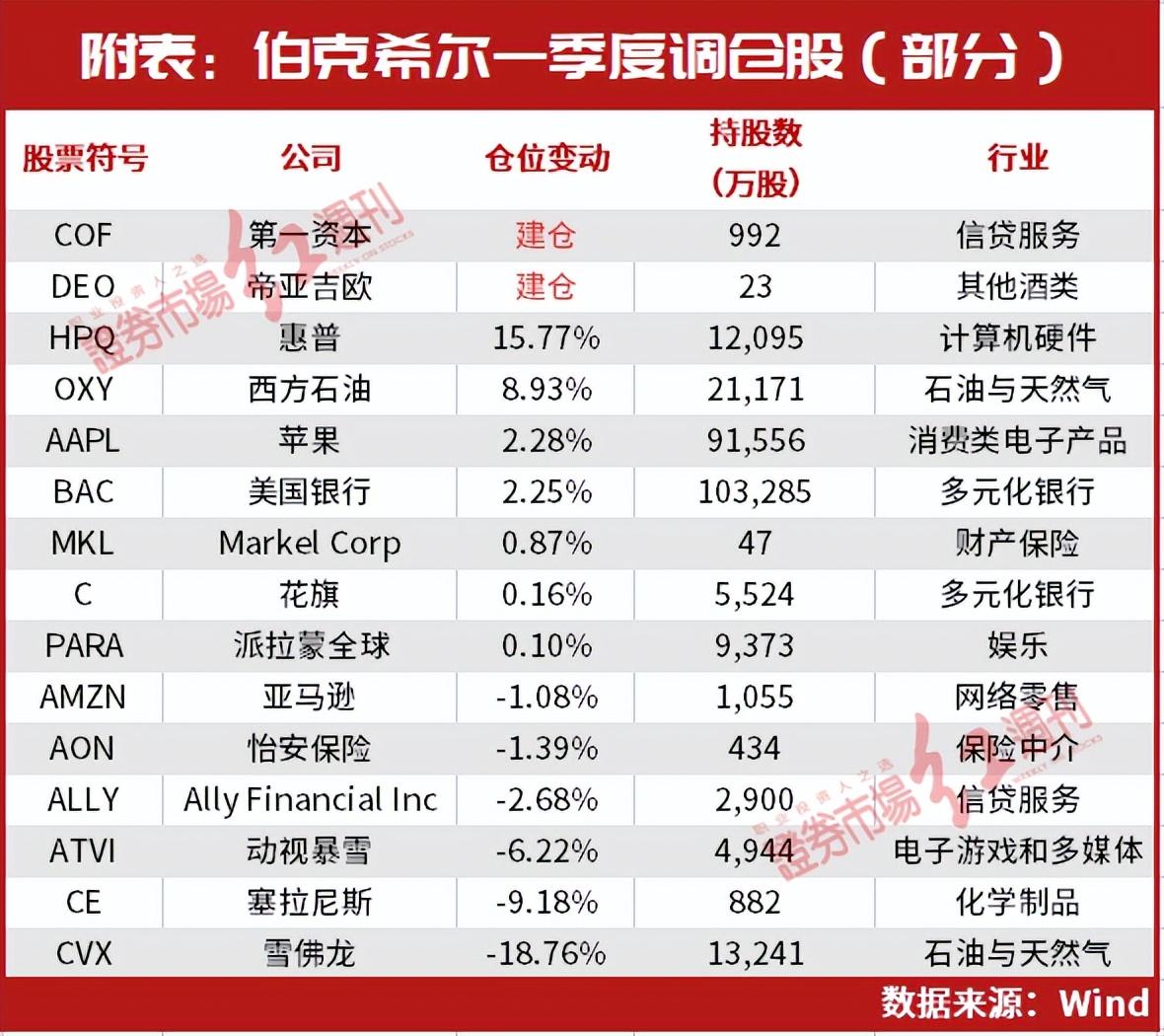 。如新纳入第一资本、酒厂帝亚吉欧、能源投资公司Vitesse Energy,截至一季度末,对三家公司的持仓市值分别为9.54亿美元、4126.4万美元与97.1万美元。
