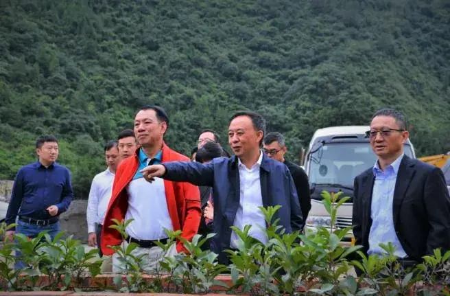 陈发树(左7)与王明辉董事长(左5)等云聚郎酒庄园