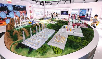 5月28日,观众在2023中关村论坛展览(科博会)上参观中国石油科学技术成果沙盘。 陈晓根摄(人民视觉)