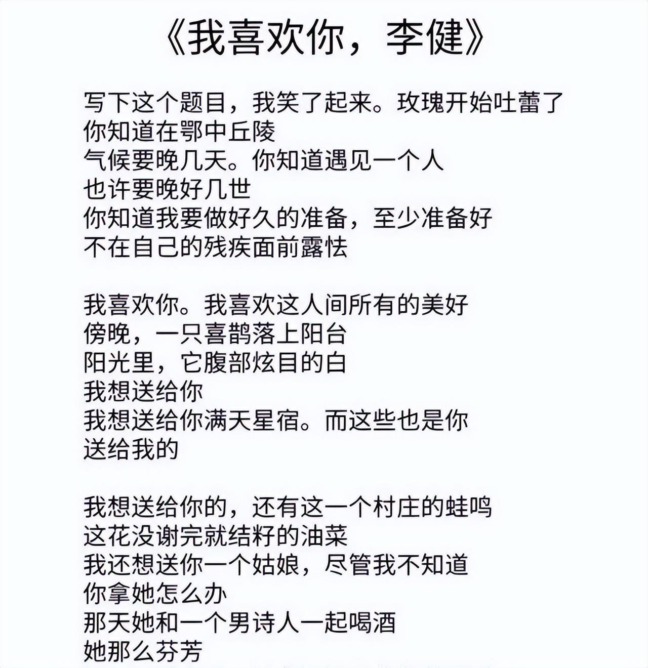 那就是给歌手李健写了4首情诗,让人惊掉了下巴,